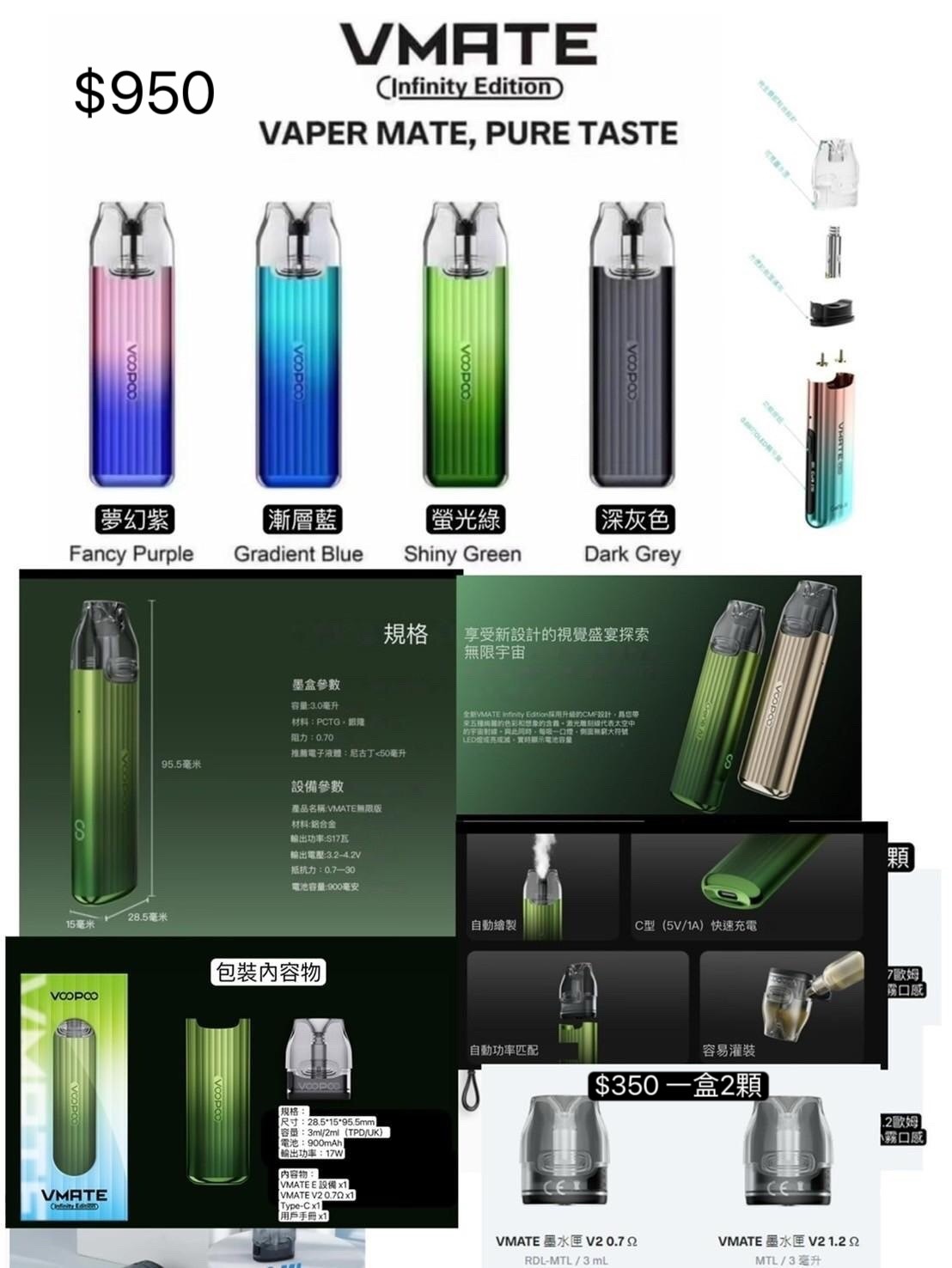 原廠正品 VOOPOO VMATE INFINITY 900mAh主機原廠正品 VOOPOO VMATE主機VMATE INFINITY主機空彈耗材