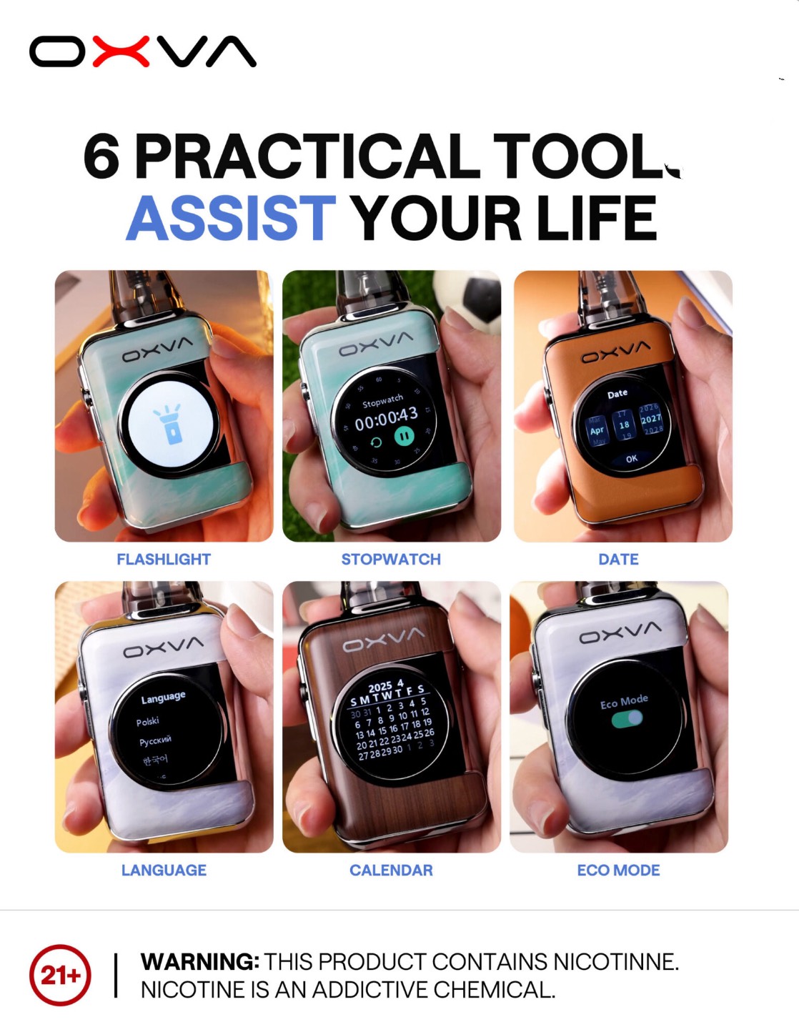 相容 OXVA Top-Fill 全系列艙(0.4 / 0.6 / 0.8 / 1.2Ω),可根據偏好靈活搭配。