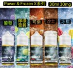 FrozenX葡萄1瓶30ml, Frozen X檸檬雪碧1瓶30ml, Frozen X可樂1瓶30ml, Frozen X沙士1瓶30ml, Frozen X老兵棍1瓶30ml, Blue Power EX葡萄冰沙1瓶30ml, Sour PowerEX覆盆子莓果冰沙1瓶30ml, 批發10瓶起私