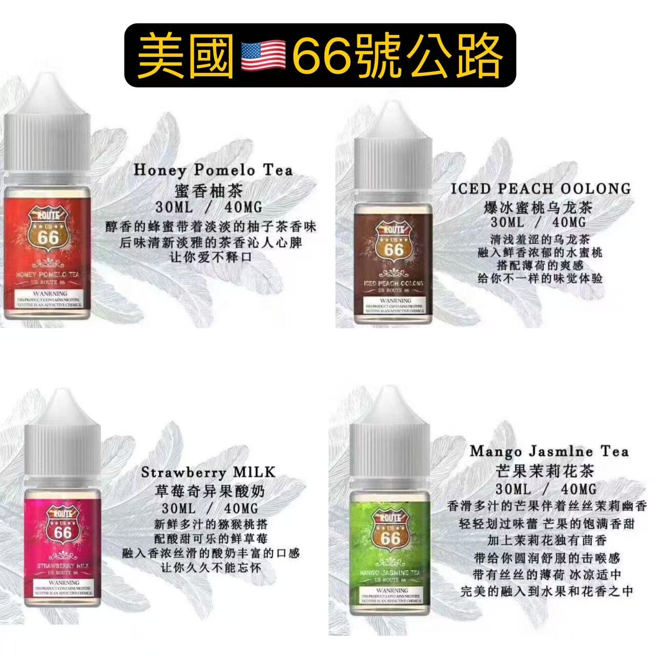 首頁 小霧油-各大品牌果汁 美國66公路果汁小油六六公路ROUTE果汁油買五送一 清倉售完為止