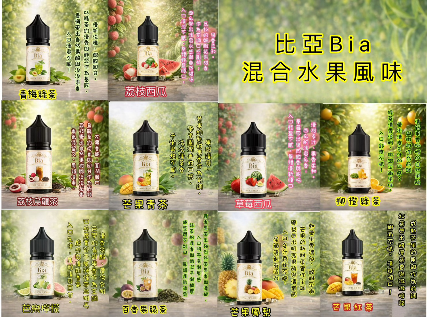 BIA比亞混合水果風味版-買五送一太空人-假日鹽-沙克-獨角獸-冰釀水果-爆脾氣-鹽博士-油恃-莫蘭迪-廚師-冰凍實驗室-翠茶-小茶山-瓦特-生命之樹-楓葉果汁-WDG油-TNT梵茶-ILIA哩亞油-LANA拉娜小油-拖船IDA-313數字油-茗茶-鋼鐵果-賴嗓-DER果汁-將軍鹽-茶道-北極鹽-