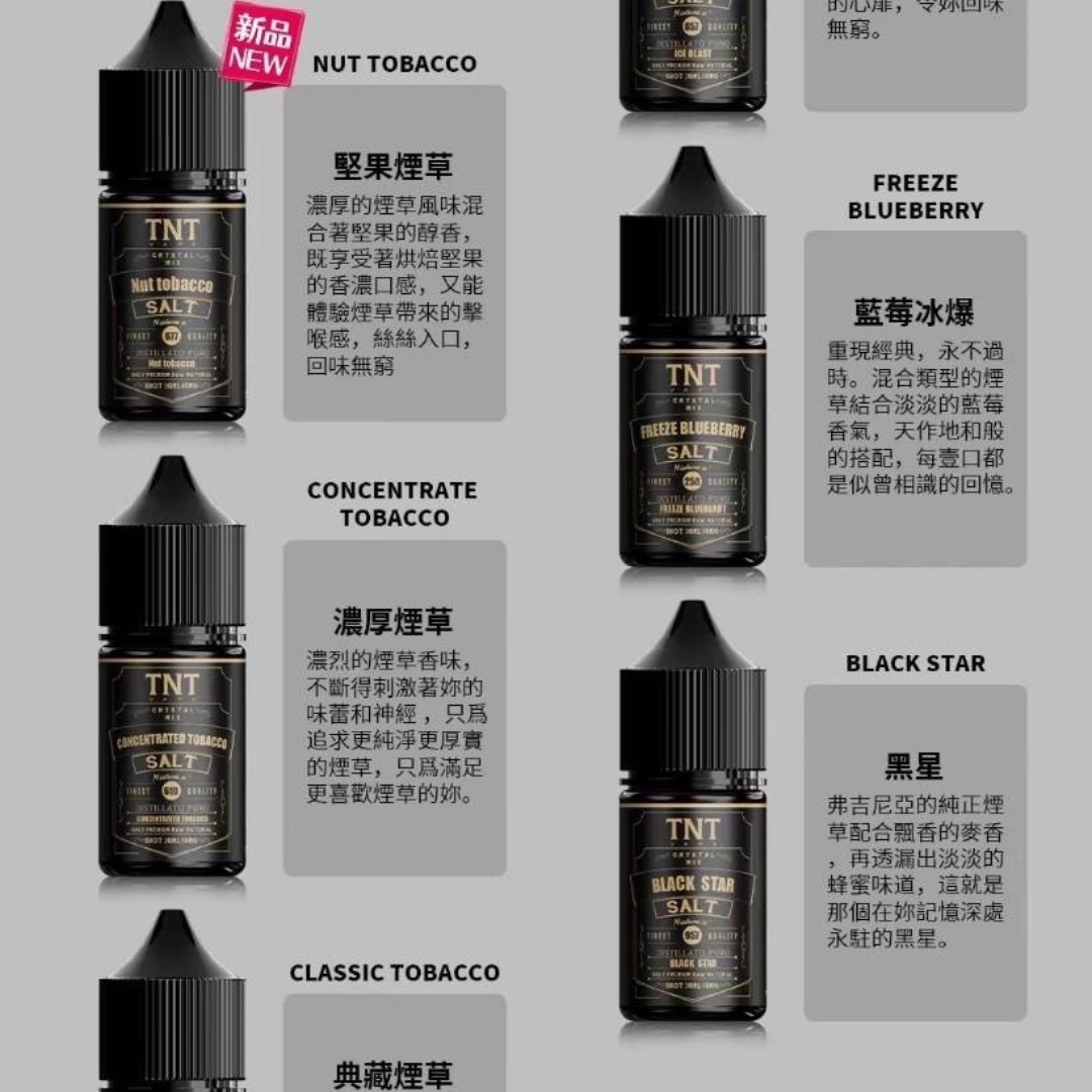 翠貝卡, 葡萄萬寶路, 堅果煙草, 濃厚煙草, 典藏煙草, 懷舊烤煙, 古香雪茄, 爆冰黑煙, 藍莓冰爆, 黑星