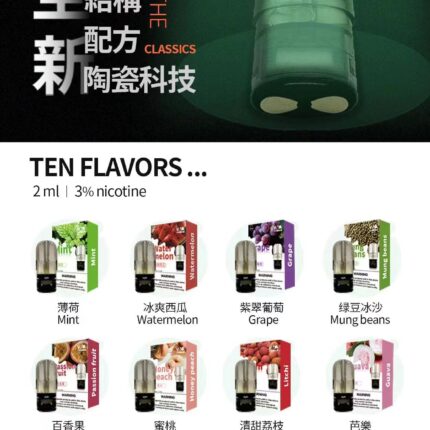 檸檬冰茶, 哈密瓜, 芭樂, 南極冰, 薄荷, 蜜桃爆珠, 荔枝, 蘋果, 冰棍, 煙草, 奇異果, 綠豆, 桂花烏龍, 鐵觀音, 藍莓爆珠, 極冰葡萄, 極冰雪碧, 西瓜, 芒果, 莓果, 龍井, 鳳梨尬百香, 可樂尬沙士, 礦力, 葡萄, 百香果 |