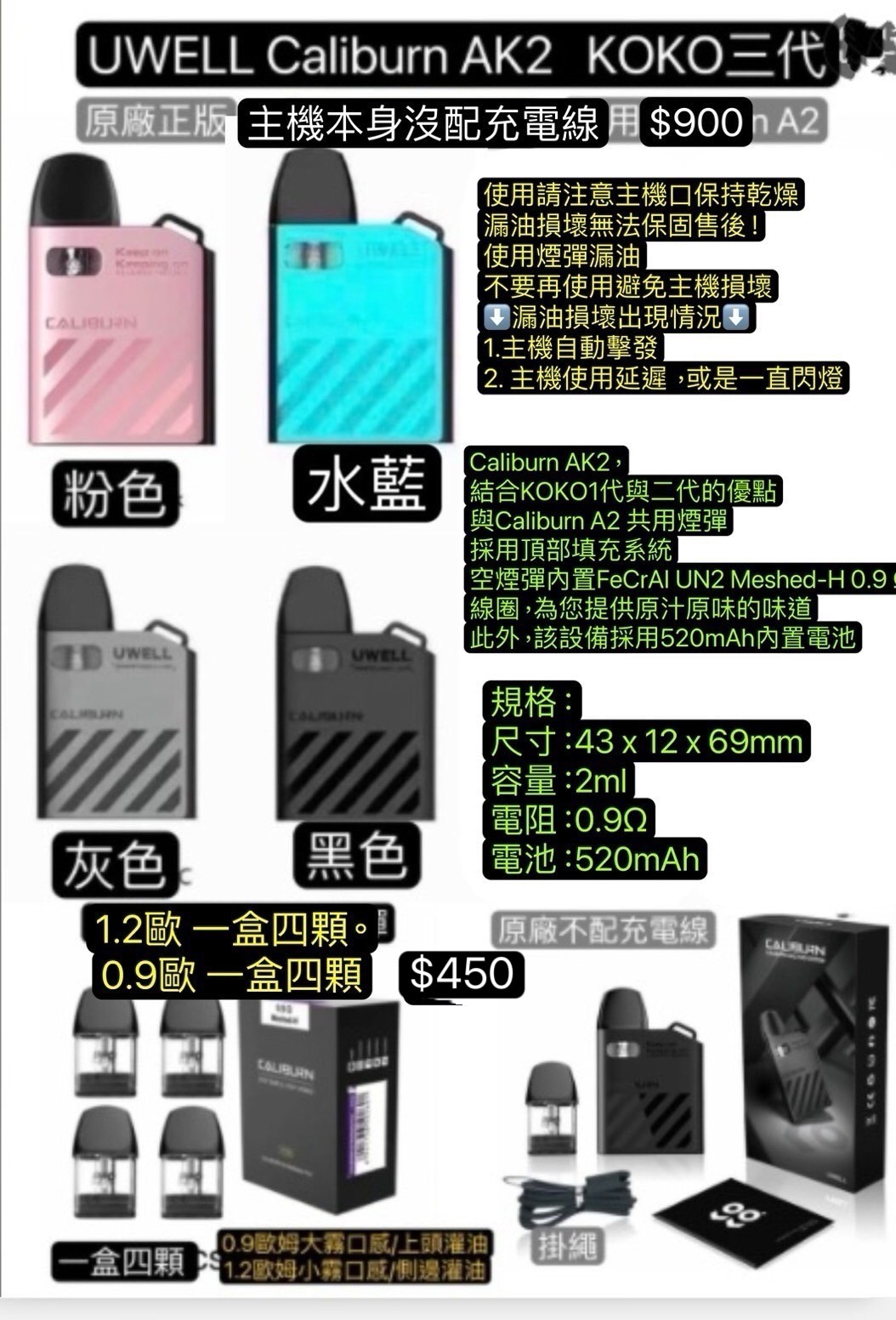 首頁 全部小霧灌油主機設備 Uwell Caliburn AK2方塊KOKO咖哩棒A2主機A2空彈0.9A2耗材1.2咖哩棒A2耗材咖哩棒AK2主機KOKO耗材KOKO空彈